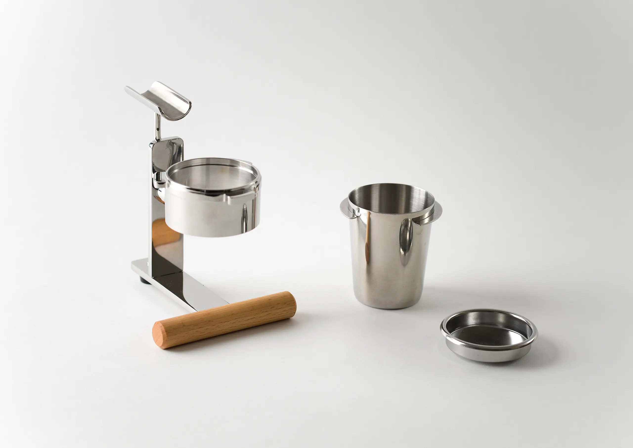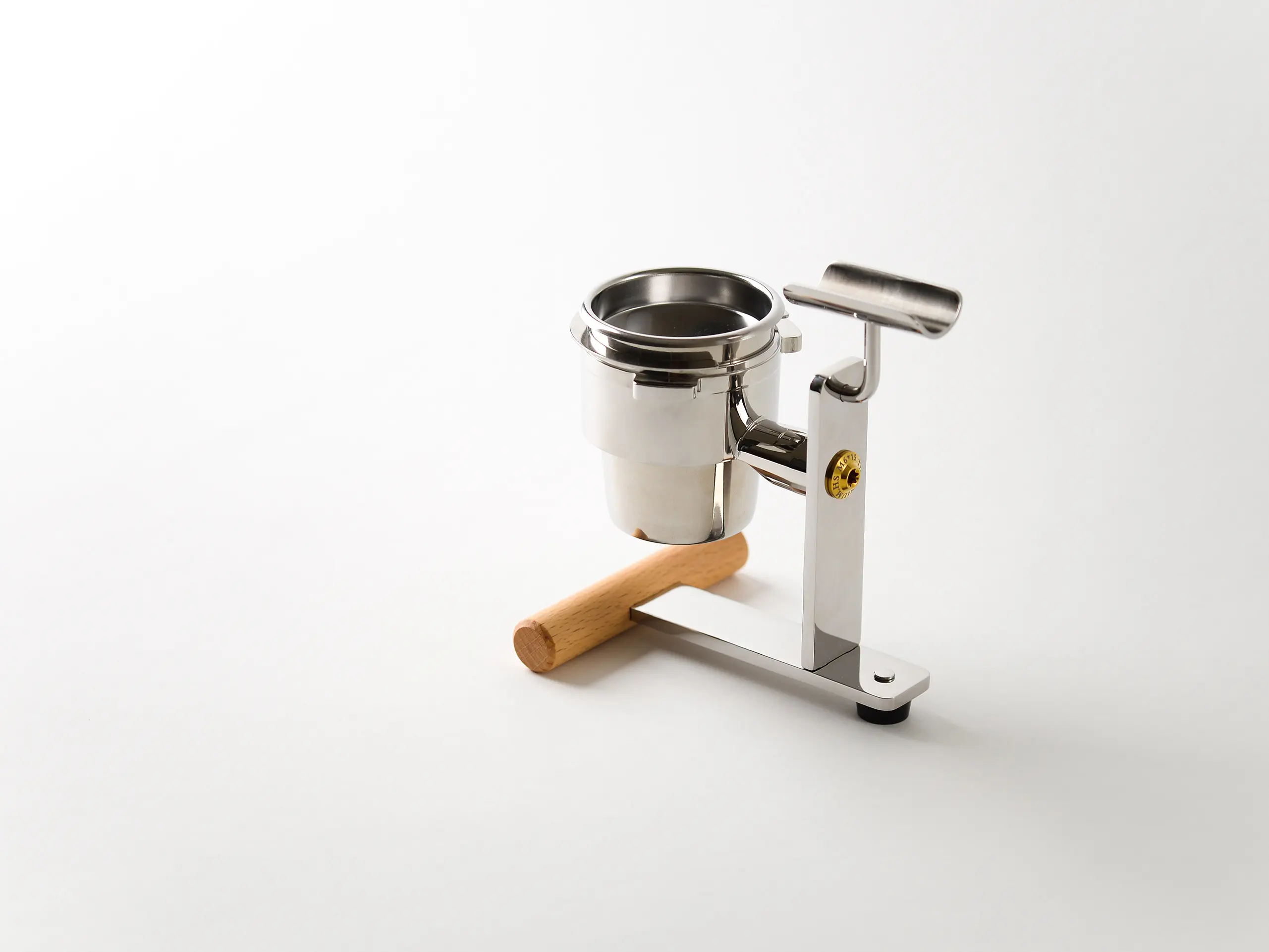 Materials: Recontextualized Portafilter, 304 Stainless Steel, Beechwood
